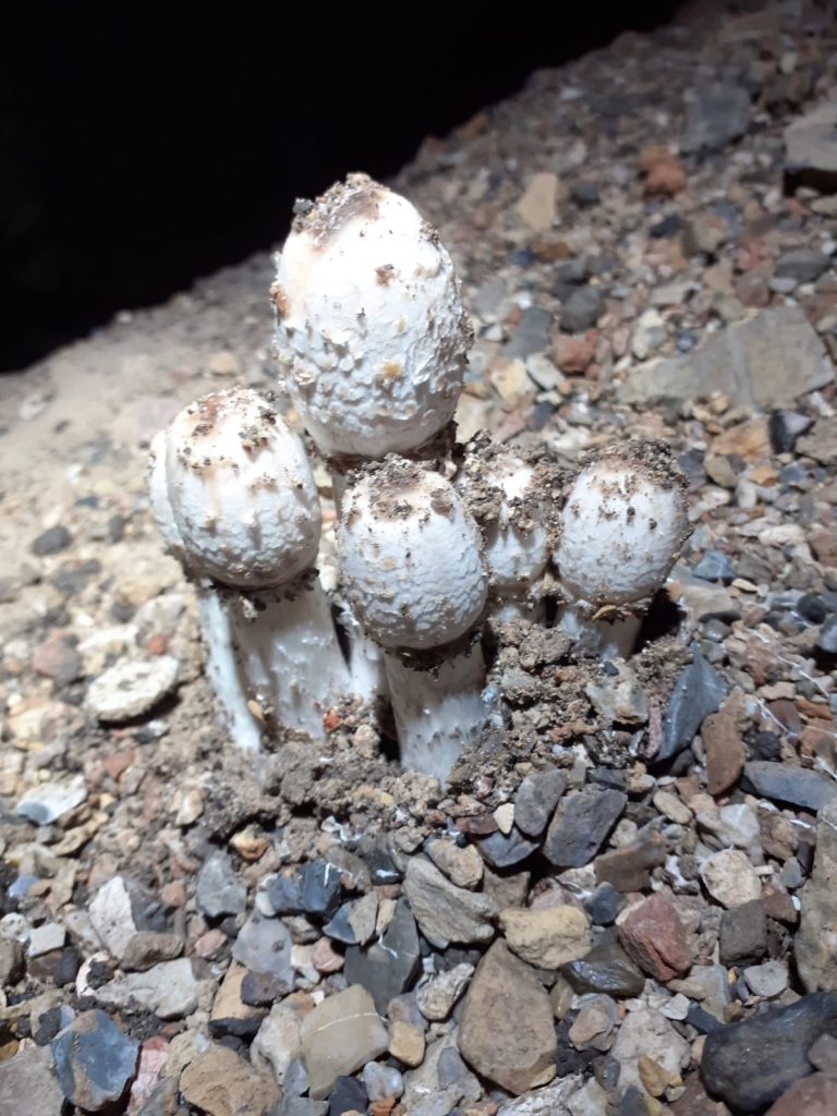 Sono funghi saprofiti che si nutrono di sostanze in decomposizione, favorendone la disgregazione. La cosa curiosa è che sono in grado di compiere il loro ciclo vitale in totale assenza di luce, questi infatti non effettuano la fotosintesi. Si dovrebbe trattare sicuramente di funghi della famiglia Coprinaceae, a cui appartengono circa una cinquantina di specie (lasciamo ai più esperti il compito di individuare la specie esatta).