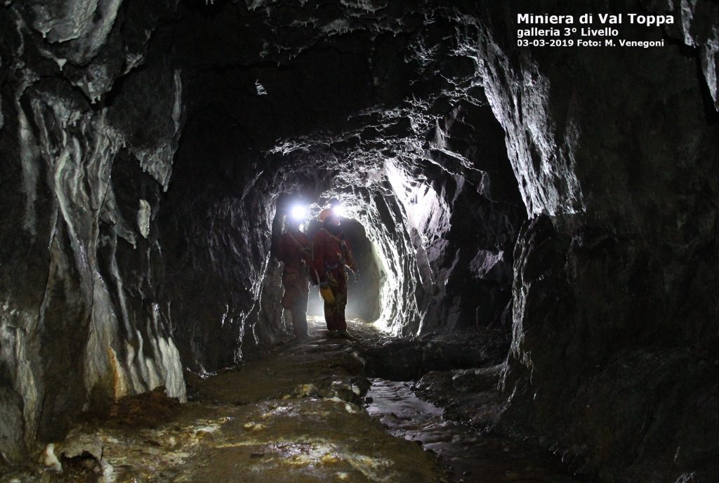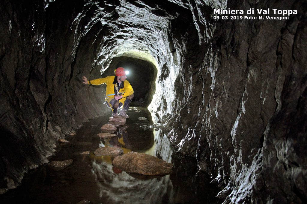 A seguito di una visita escursionistica alla miniera con l’Alpinismo Giovanile del CAI Casorate, accompagnati dalla Guida Escursionistica M. Conti, abbiamo avuto modo di conoscerlo e prendere i contatti con i responsabili gestori della Miniera. Chiacchierando e discutendo, ne è nato così uno spirito collaborativo di studio e ricerca effettuando esplorazioni mirate in quelle zone non raggiungibili con la normale progressione dalla comune persona. Utilizzando le nostre tecniche e competenze speleologiche, stiamo rimappando l’intero complesso utilizzando le nuove tecniche di rilievo digitale. Nel Maggio 2018 in occasione del convegno intitolato “storia delle miniere” effettuato a Pieve Vergonte, abbiamo esposto una prima presentazione e porzione del lavoro che stiamo svolgendo. Il complesso minerario è caratterizzato da più livelli, alcuni dei quali non più visitabili a seguito di frane e cedimenti strutturali. Uno dei lavori che stiamo effettuando è anche quello di ripristinare questi passaggi. Nel 2019 siamo riusciti a rivisitare alcune gallerie rimaste chiuse ed ignote da tempo come quella nella foto sotto riportata.