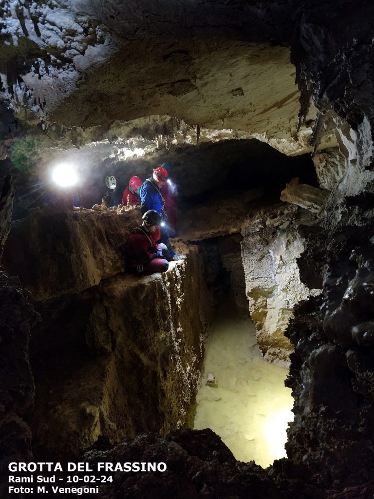 La Grotta del Frassino è la grotta più “gettonata” del Parco Regionale Campo dei Fiori. Il suo andamento sub-orizzontale, la sua bellezza e la sua non difficile percorribilità la rendono idonea anche ai non esperti. Tuttavia, si consiglia sempre di farsi accompagnare da uno o più esperti del settore, inoltre per accedervi è necessario avere l’autorizzazione del Parco. La grotta può essere divisa in due zone: i rami nord e i rami sud. Per i rami sud, l’escursione non necessita di nessuna attrezzatura particolare salvo il caschetto con l’illuminazione, è quindi adatta a anche ai neofiti. Per i rami nord invece è indispensabile avere con sè tutta l’attrezzatura per progredire su corda, quindi non è idonea ai non esperti. Di seguito è riportata la scheda d’armo dei materiali necessari per raggiungere le zone più profonde della grotta.